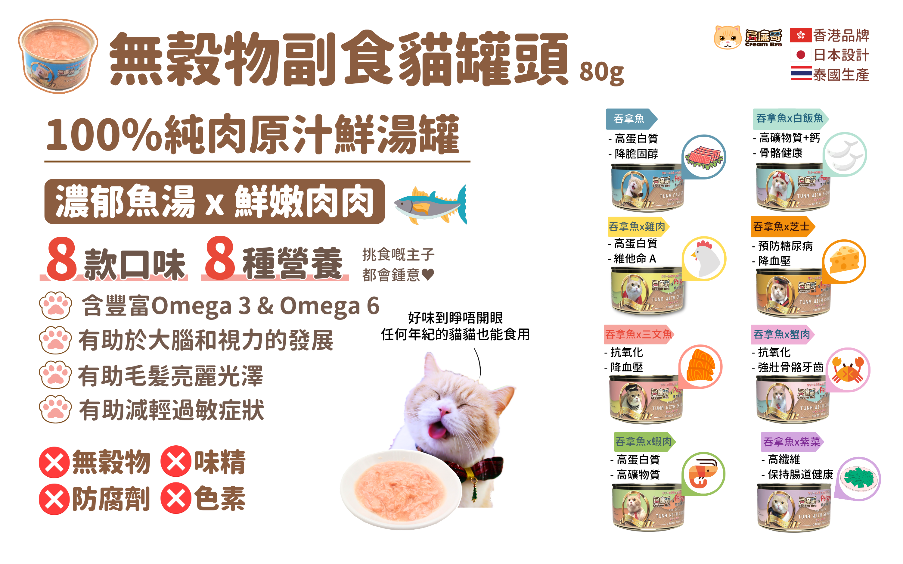 忌廉哥 x Petsgoal - 無穀物鮮魚湯魚肉副食貓罐罐