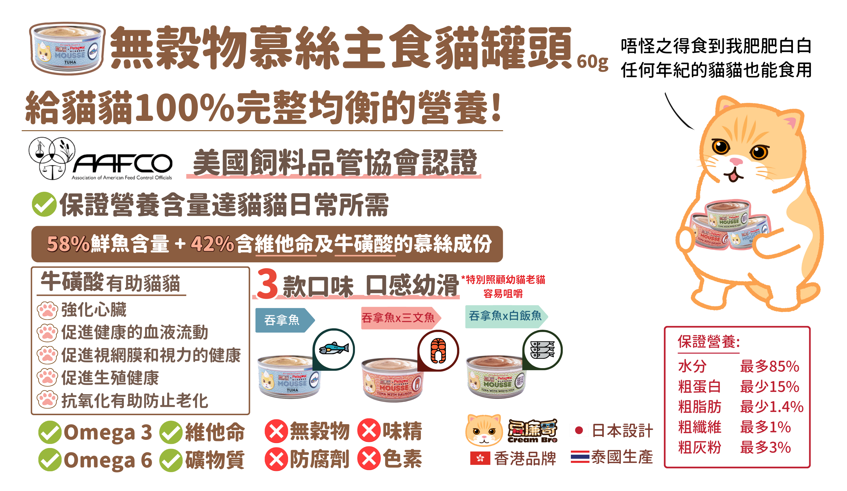 忌廉哥 x Petsgoal - 無穀物鮮魚肉慕斯主食貓罐罐 - 吞拿魚+三文魚