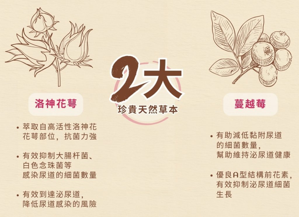 洛神花萼萃取粉、粟米鬚萃取粉、蔬果酵素、蔓越莓萃取粉、L-色胺酸、綜合維他命和礦物質、小分子活性肽、專利RBE玄米萃取物