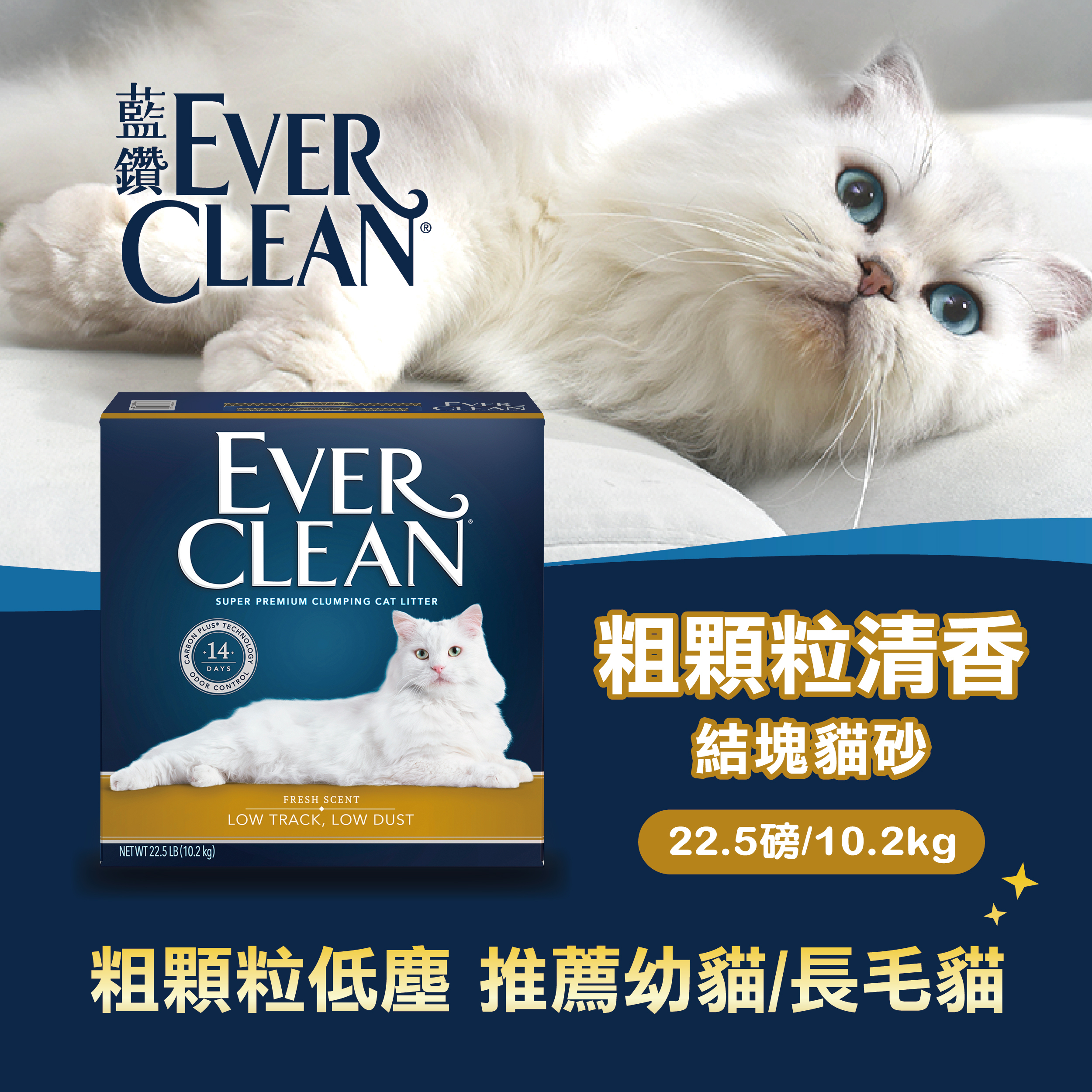 EverClean 粗顆粒清香結塊貓砂(淡香味) 22.5LB(金色外盒)