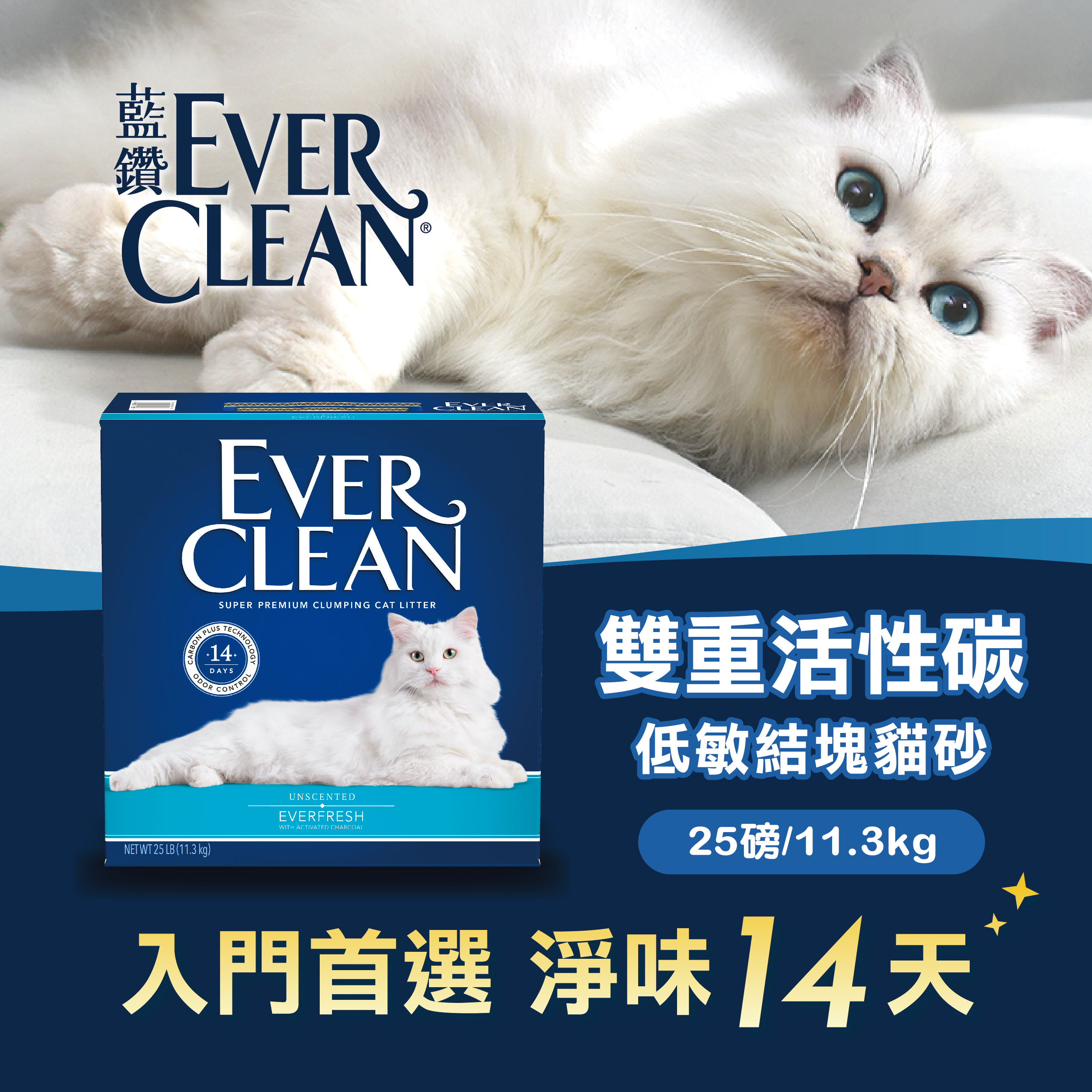 EverClean 雙重活性碳低敏結塊貓砂(無香味) 25LB(藍色外盒)