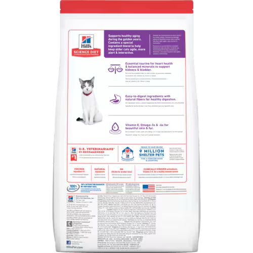 專為老11歲以上老年貓而設。幫助在生命黃金時期的貓咪健康地老化。含特製混合營養配方,有助於高齡貓維持靈活度,增加敏銳及互動意願。