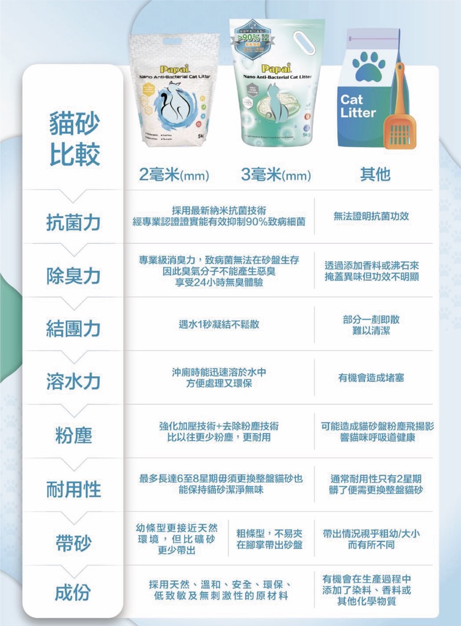 Papai®️巴派納米抗菌貓砂(3mm粗條型) 5kg
