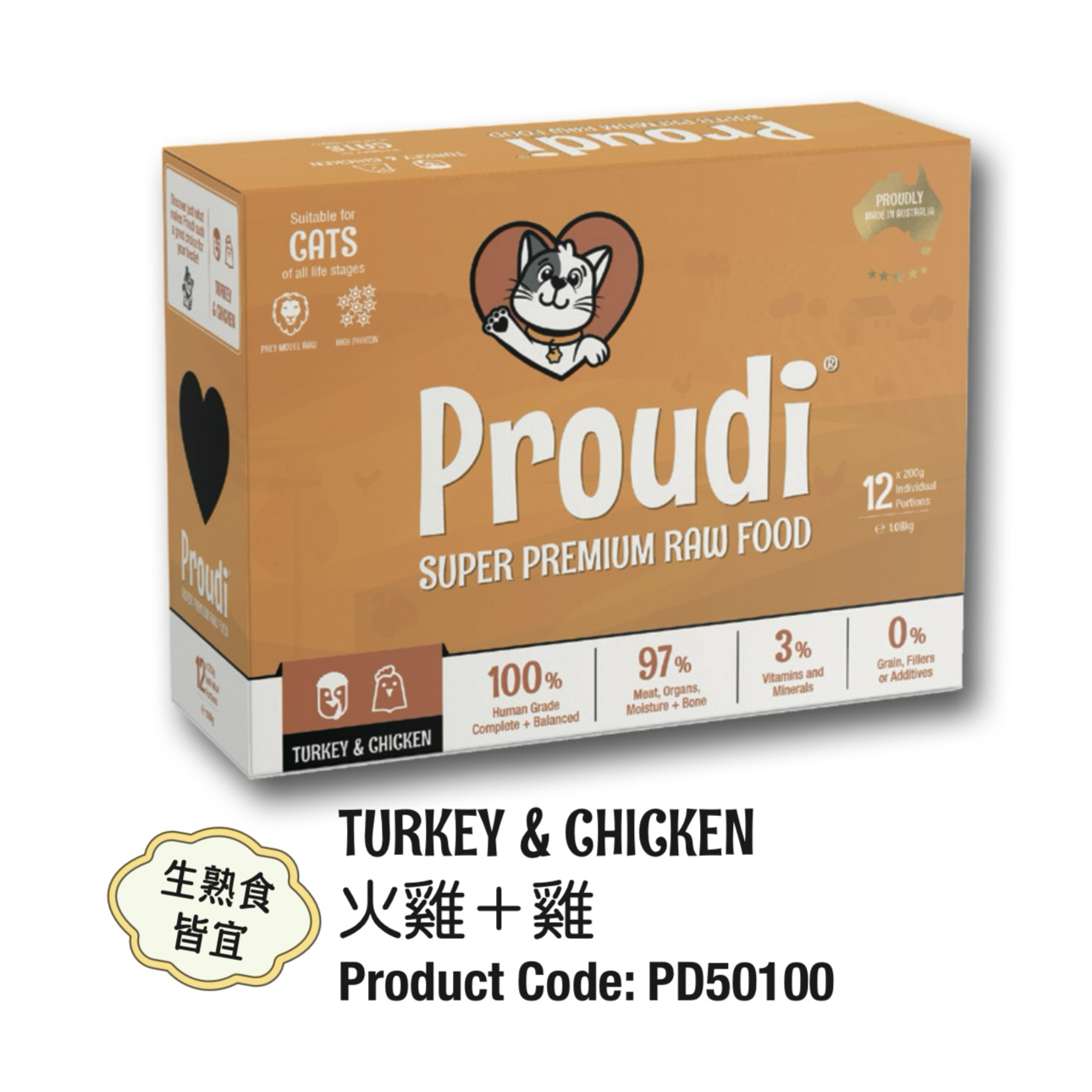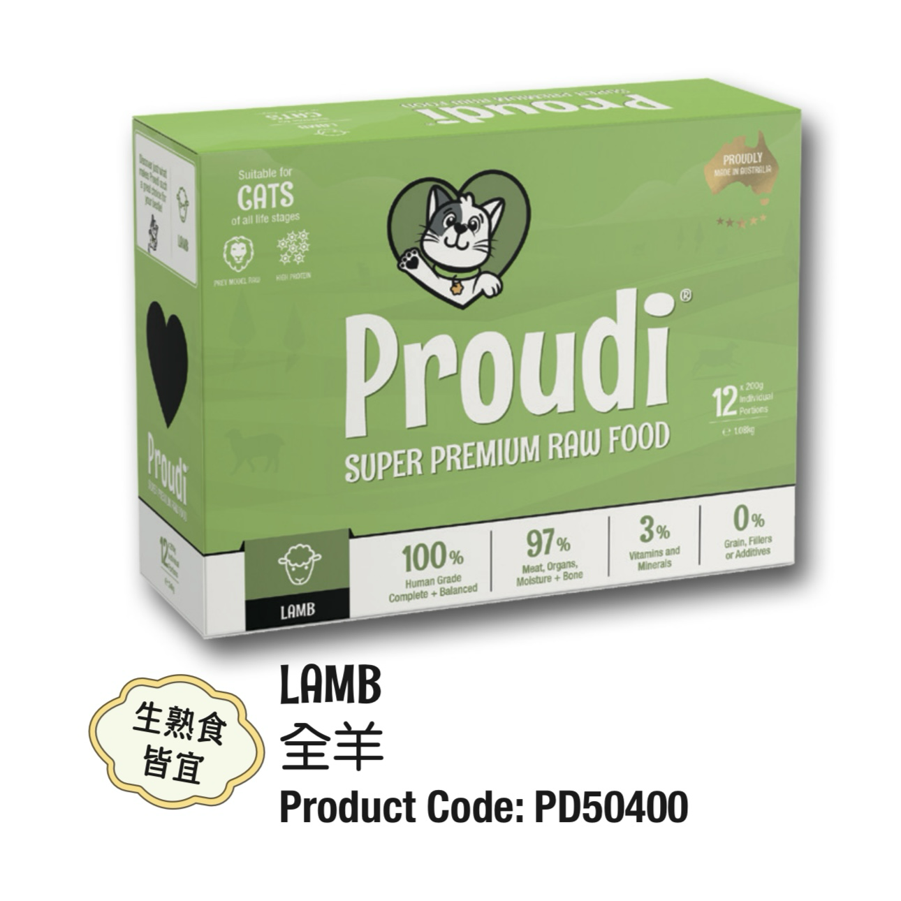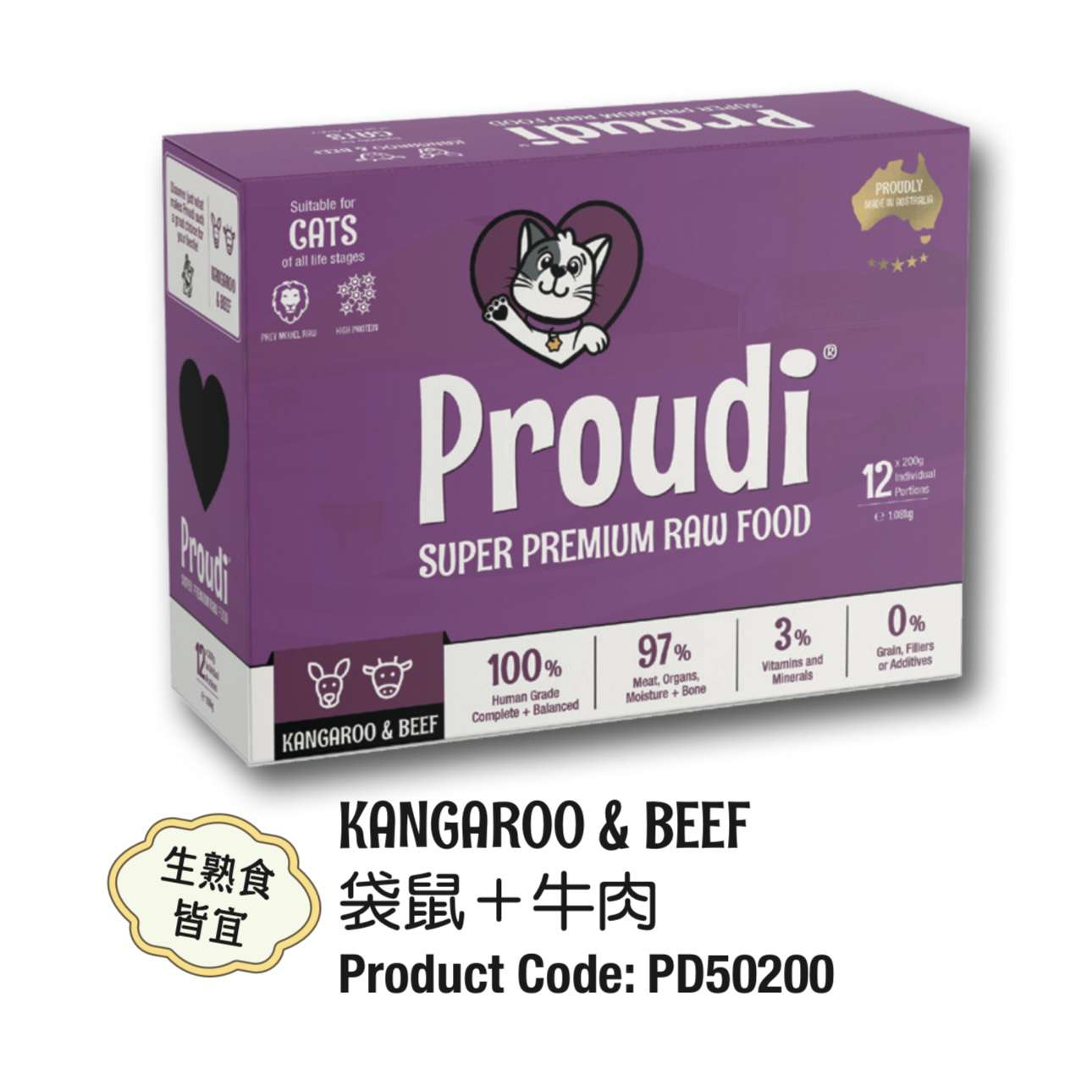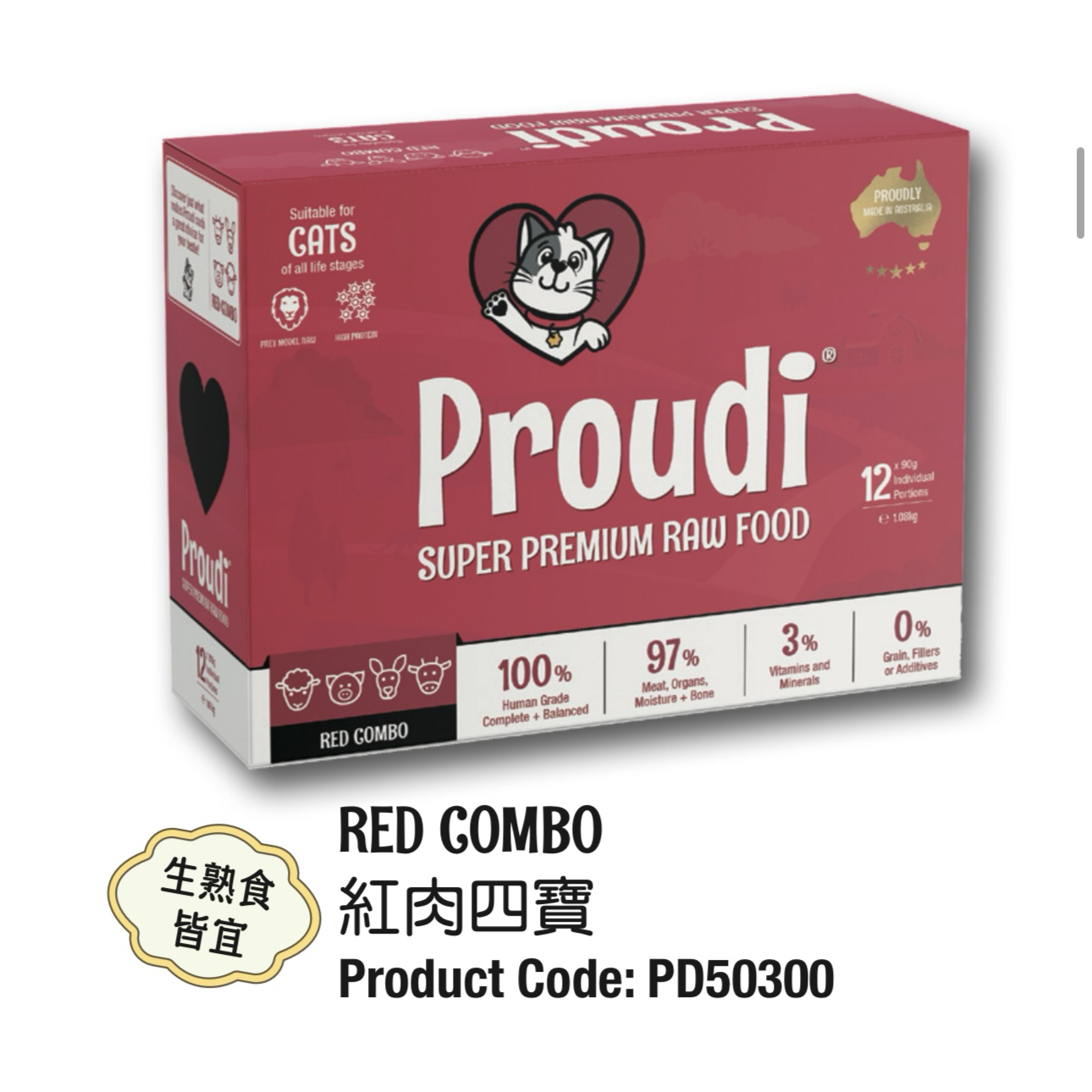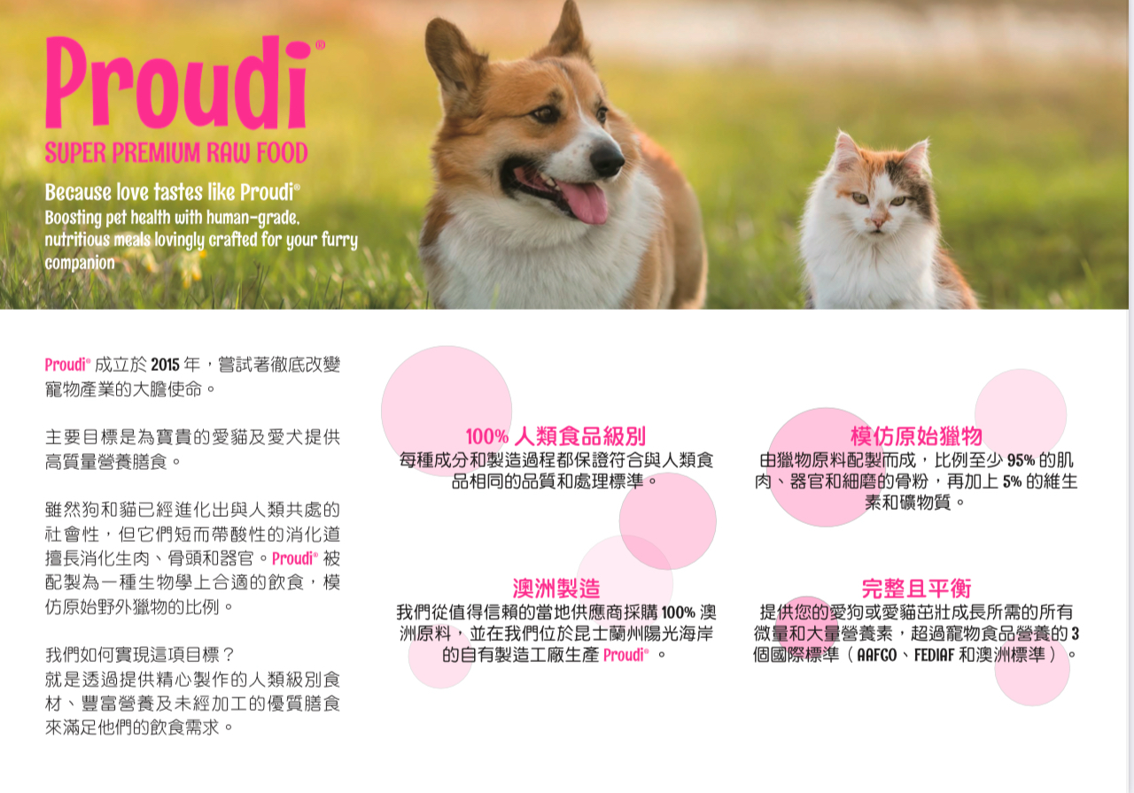 - 分成方便的肉餅 - 只需將您貓的 Proudi 食物儲存在冰箱中,然後在餵食前取出所需的部分解凍