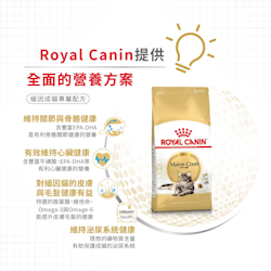 - 緬因貓體型大,骨架大,會終身面對關節問題。 配方有助於支持骨骼及關節健康,添加EPA及DHA。