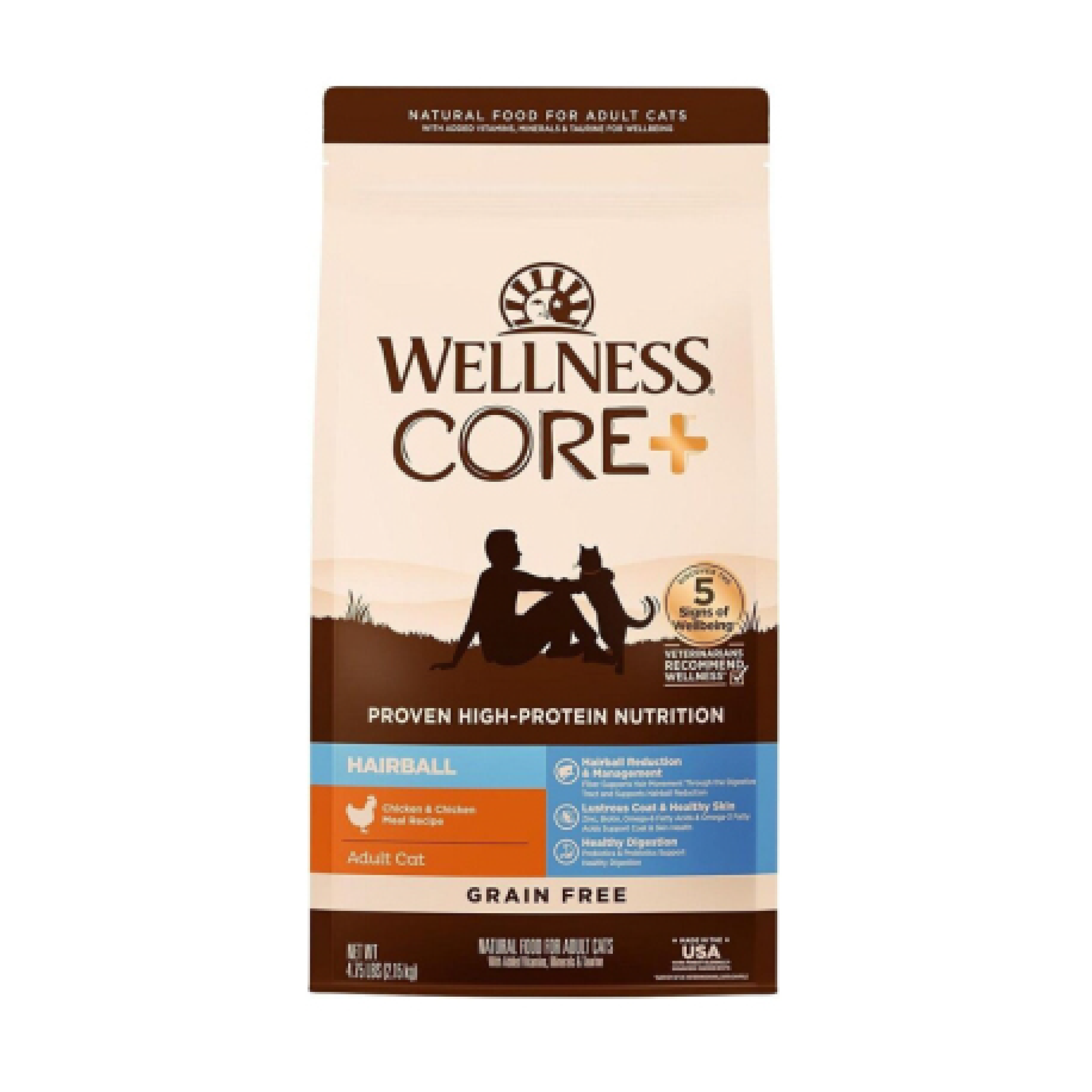 Wellness CORE+ 去毛球配方專為貓咪提供高蛋白、天然營養,以優質成分支持全身健康。每款配方經精心設計,不僅滿足貓咪的五大健康指標,還特別針對貓咪的特殊營養需求量身打造。這款去毛球配方含有有助於減少及管理毛球問題的纖維成分,幫助毛髮順利通過消化道。 無穀物且營養豐富的配方提供高品質的蛋白質,不含副產品、小麥、玉米、人工防腐劑及人工色素,讓你的愛貓享受健康又安心的每一餐!